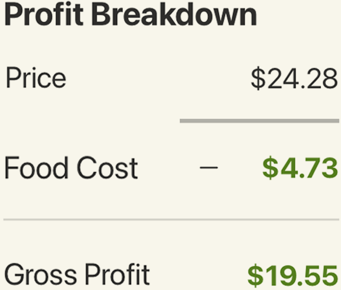 Menu Items show operators the true cost of what they serve—and the profitability of each dish.