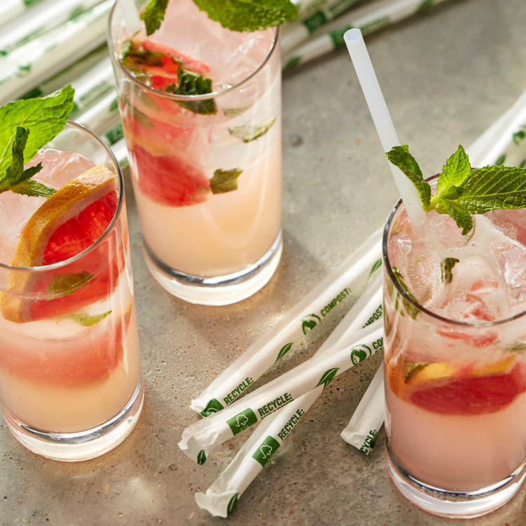 You have good reasons to make sustainability a priority. The media has been paying close attention to the pollution in our oceans, with particular focus on plastic straws. Many cities and states are banning plastic straws. Stay ahead of the trend with 100% compostable straws made from plant-based PLA. Your guests will enjoy the experience that a plastic straw provides, with the added benefit of helping to protect the environment.