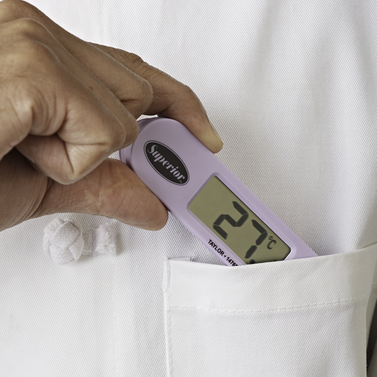 - Folds away for chefs' coat pocket-storage and to protect probe