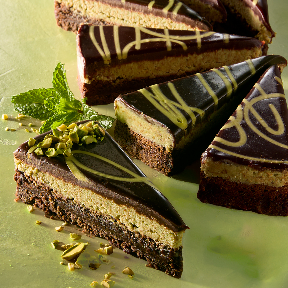 Anyone keeping up with food trends has seen the growing interest in “Dubai Chocolate.” These sweets feature the rich flavors of pistachio and chocolate mixed with crunch from kataifi, a shredded phyllo dough that is baked until crispy and used in a variety of traditional Middle Eastern sweets – making it a key ingredient for Dubai Chocolate diehard fans. We saw an opportunity to offer a unique take on a flavor that diners see on their own social media feeds. Instead of the trending chocolate bar format, our Devonshire® Dubai-Style Chocolate Torte offers an elevated solution for foodservice. A chocolate graham crust base is topped with a luscious ganache and a crunchy layer of pistachio and kataifi, then topped with more velvety chocolate ganache – making it a perfect salty, crunchy, decadent bite. The green swirl pattern on top visually pops, offering a dessert that is designed to stand out to both the eyes and taste buds, a sweet that delivers a timely trend with classic flavors diners adore.