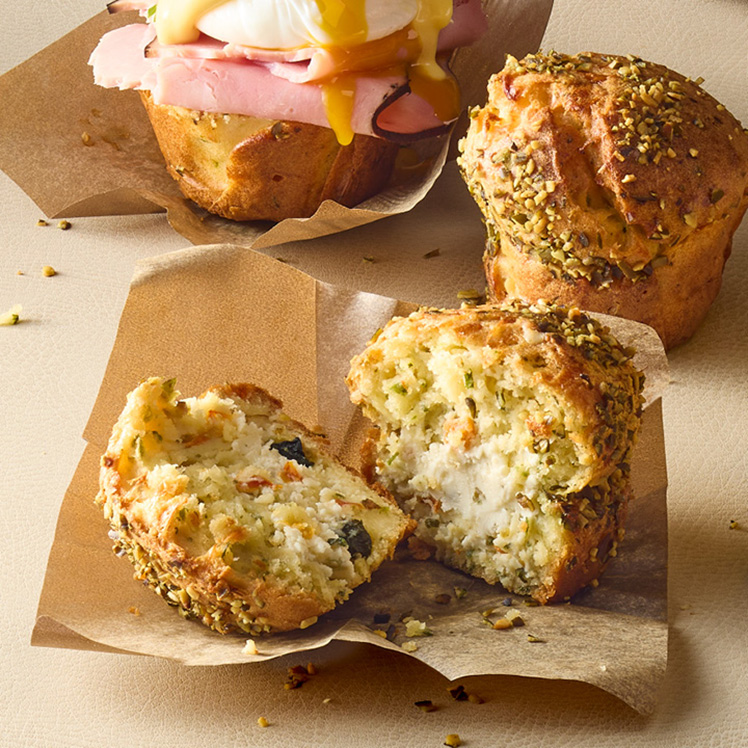 Inspired by rich flavors of European cuisine, these savory muffins are filled with luscious Boursin® cheese, infused with garlic and herbs that harmonize beautifully with zucchini, tomatoes, pumpkin seeds, chives, parsley and dried garlic. Skillfully crafted for superior taste and quality, the light, airy texture is ideal for breakfast, brunch or a gourmet side dish. Enjoy it solo or pair with soups, salads or entrées for an added layer of French charm and deliciousness to your menu.