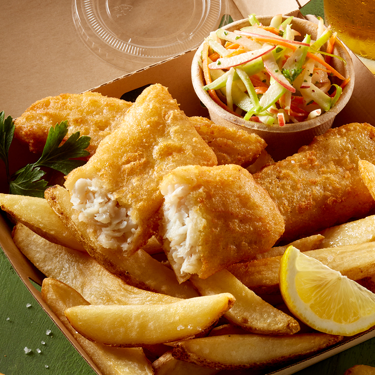 Subtly fruity, mildly sweet, incredibly crispy, this next-gen battered fish will delight cider drinkers and fish lovers alike. The craft cider-infused batter delivers a uniquely delicious take on fried fish, while still providing that golden crunch and flaky interior. Great on a sandwich, in a basket with chips, or in a taco, salad or bowl. It comes ready to cook from frozen, saving you labor.