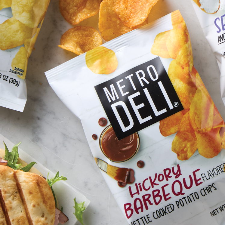 Our Metro Deli® Kettle Cooked Potato Chips have the same great taste, now with a refreshed design customers will eat up. Thickly sliced potatoes are kettle-cooked in batches for a non-uniform shape, bold potato flavor and a thicker, sturdier texture. Then they’re seasoned for that iconic kettle chip flavor. Ready as an add-on, upsell or to serve as a hearty side in its new packaging.