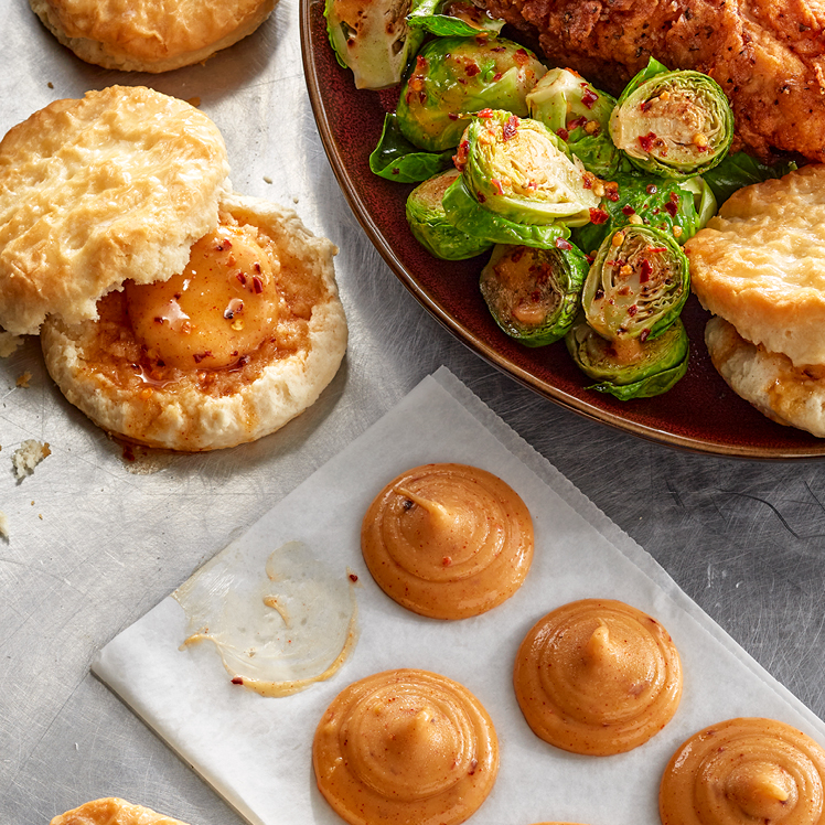 Hot honey is all the rage. So is finding labor-saving items you can use to upsell menu items. Our hot honey butter comes in approximately ½-oz. dollops for an easy way to portion, fight waste and make it a kitchen staple. From grilled salmon to chicken and waffles to burgers, veggies and breads, unleash this secret weapon now.