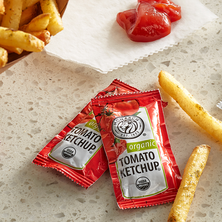 Featuring no artificial flavors, colors or preservatives, and sweetened with sugar instead of high-fructose corn syrup, the Monarch® Organic Tomato Ketchup you love in the tabletop squeeze bottle is now available in single-serve packets. With an increase in off-premise dining, Monarch Organic Tomato Ketchup Single Serve Packets provide a way to elevate menu items for diners who demand organic and sustainable options, even in their to-go orders. And thanks to the eye-catching design, they will know they are getting a great-tasting ketchup.