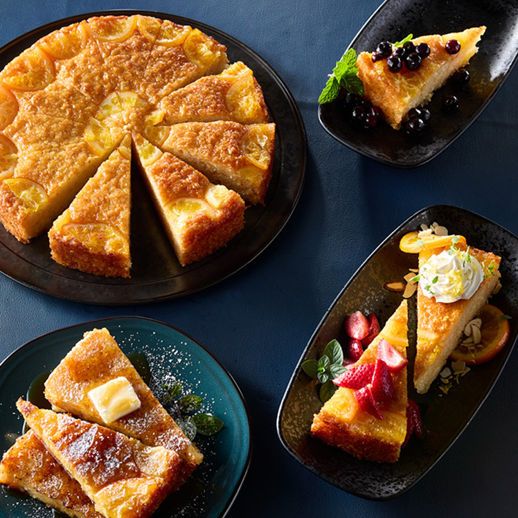 Our Devonshire® Premium Orange Phyllo Cake is a heartfelt tribute to family tradition. Known as portokalopita in Greece, this beloved cake starts with dried and shredded phyllo pastry that is mixed with Greek yogurt. The addition of sweetened orange pulp infuses the cake with refreshing citrus flavor. The cake is topped with hand-placed sweetened orange slices, and once baked, a sweetened syrup is poured on top. It’s a treat that is a celebration of food and tradition.