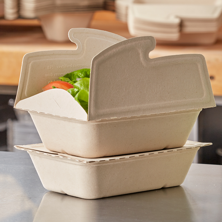 Take your to-go program to new levels with sustainable containers made of bagasse fiber, which comes from sugarcane. Part of our Serve Good® lineup, these 16-oz. and 32-oz. containers are designed with an intuitive double-locking system that requires no lid. Microwaveable and oven-safe up to 350°F, they reduce leaks and spills, ensuring a reliable, responsible takeout experience