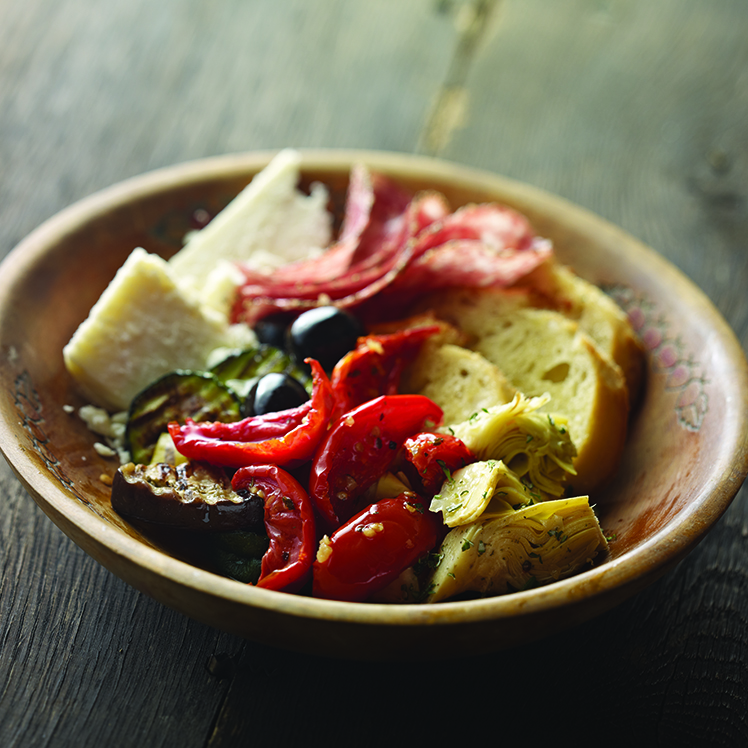 Tomatoes. Vine-ripened tomatoes are roasted for 12 hours and marinated in oil, garlic,