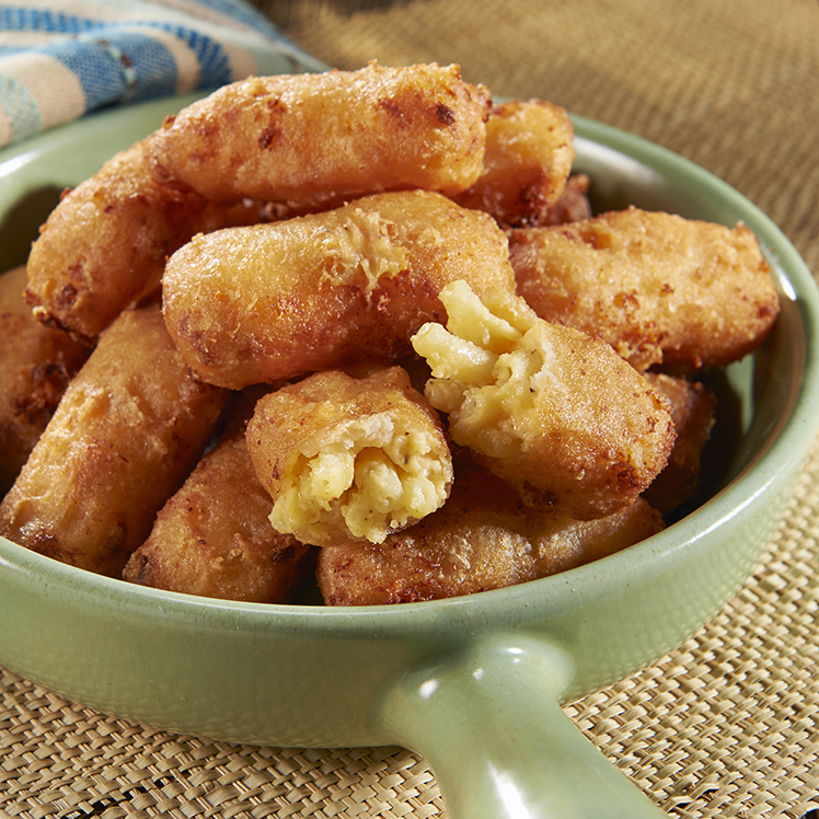 Molly’s Kitchen has given an exciting, upscale twist to one of America’s favorite comfort foods by combining al dente pasta with eight delicious cheeses—Romano, parmesan, American, aged white cheddar, cream cheese, Fontina, cheddar and either smoked Gouda or pepper jack—in a lightly battered, bite-size nugget of rich, creamy perfection. Our Smoked Gouda bites have a mellow, smoky flavor while the Pepper Jack version is buttery and slightly spicy with a touch of jalapeño. Both are surprising and tasty spins on the traditional that add energy and excitement to your menu.