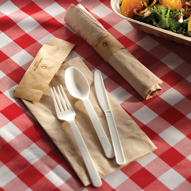 - Napkin and cutlery are Biodegradable Products Institute (BPI) Certifed compostable