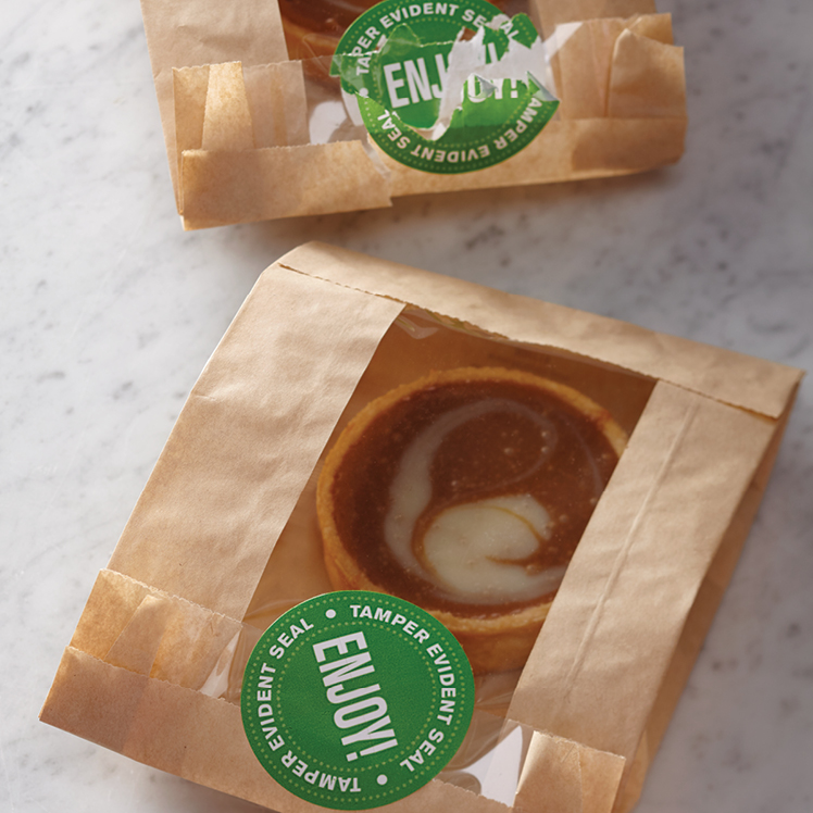 Take-out is continuing to take off in the food scene, and diners have increased concerns about food security during delivery. Our Tamper-Evident Label offers the reassurance that each order has remained untouched in transit from your door to its destination address. This convenient, permanent, pressuresensitive seal features slits for security: when the label is removed, it separates into pieces, indicating tampering. It fits a wide variety of take-out containers and bags, so all of your take-out customers can have confidence in the food they’re about to enjoy.