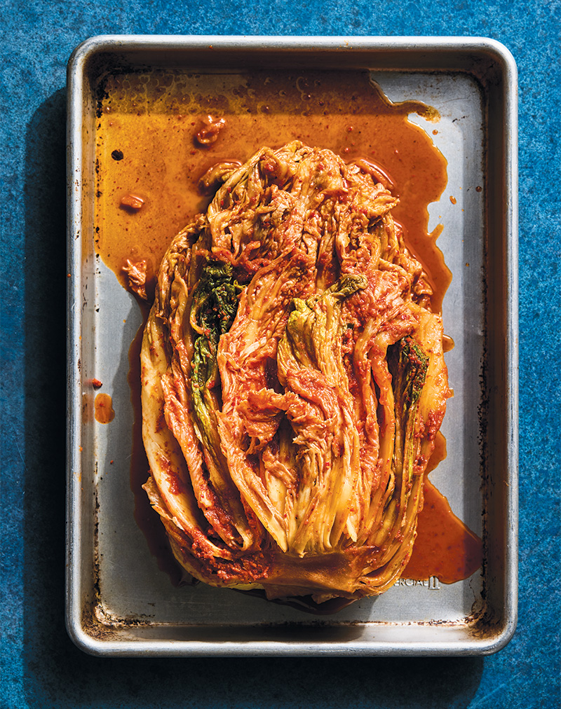 “Sourcing organically and regeneratively is always going to be better for gut health, as a result of the increased microbial diversity in the soil,” Waite says. Kraut and kimchi make appearances frequently in dishes, such as a beet Reuben sandwich with sauerkraut, grilled cabbage with kimchi and lentil caviar, and roasted cauliflower with kimchi and a “fishless” fish sauce made with seaweed and ginger. “Polysaccharides and polyphenols from brown and green seaweeds enhance the abundance of beneficial bacteria and their production of short-chain fatty acids in the gut,” Waite explains.