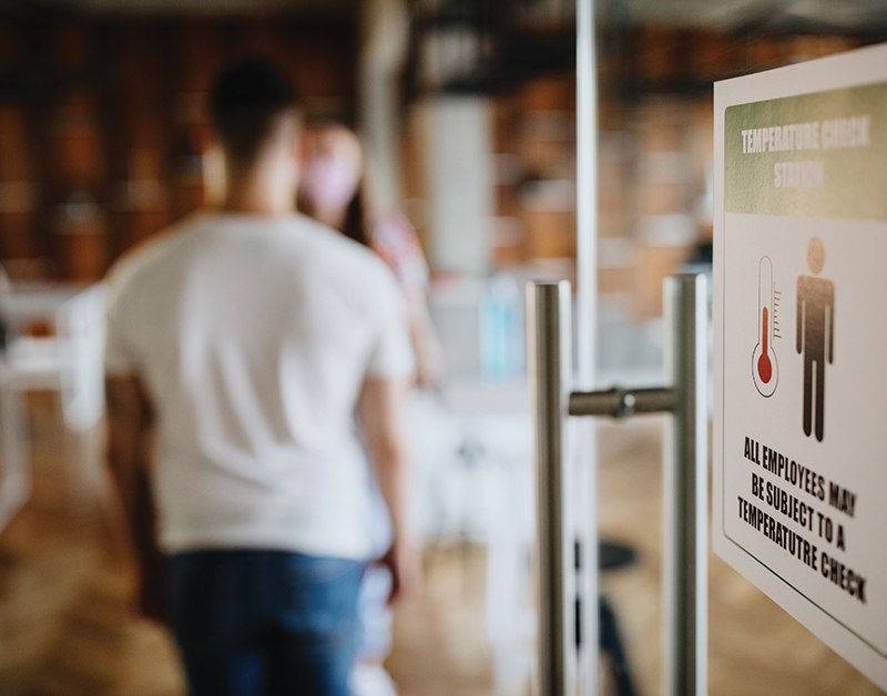 “BEFORE EACH SHIFT, OUR TEAM MEMBERS COMPLETE A REAL-TIME HEALTH SURVEY VIA CLEAR’S HEALTH PASS APP. UPON ARRIVAL, THEIR TEMPERATURE IS TAKEN VIA A TOUCHLESS CLEAR POD OR A THERMOMETER ONSITE."