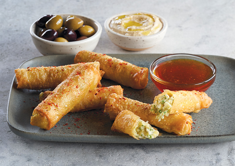 Few cheeses can take the heat and keep their shape like haloumi that hails from Cyprus, its cousin talagani with its roots from Greece, or paneer that originates from India—all of which are produced stateside. That sturdy attribute, which ackawi and Greek and French-style feta also enjoy, makes them go-to main proteins. They have heft, don’t melt like mozzarella and grill nicely, offering a “meaty” taste.