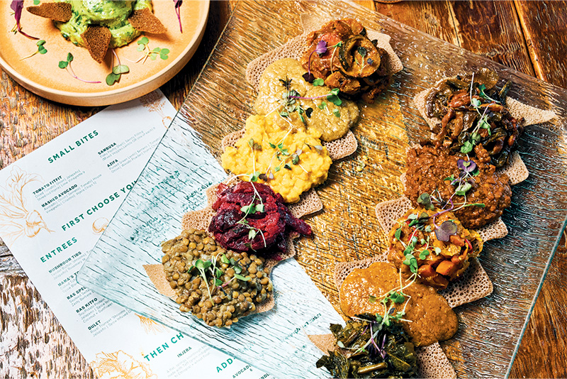Perhaps no cuisine is better suited for a plant-based lifestyle than Ethiopian. According to Romeo Ragalli, chef/owner of Ras Plant Based in Brooklyn, New York, veganism is a natural part of life in Ethiopia, where more than half the population belongs to the Ethiopian Orthodox Church and abstains from eating animal products 180 days of the year. As a result, Ethiopians have a knack for plant-based cooking and a slew of hearty local ingredients such as legumes, lentils, yellow peas and collard greens that can easily replace meat as the protein base of a dish.