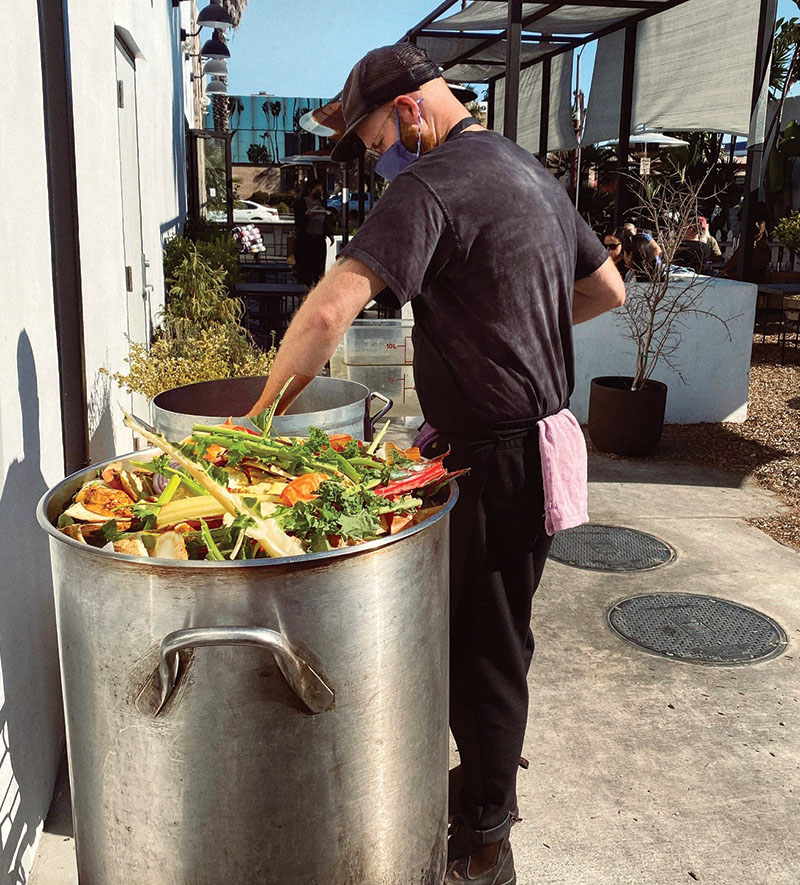 Finding use for anything that might otherwise be thrown out will help reduce food costs and offer a creative challenge. At zero-waste, plant-based restaurant The Plot in Oceanside, California, celery root pulp becomes the base for takoyaki, a crispy ball-shaped Japanese snack typically filled with minced octopus.